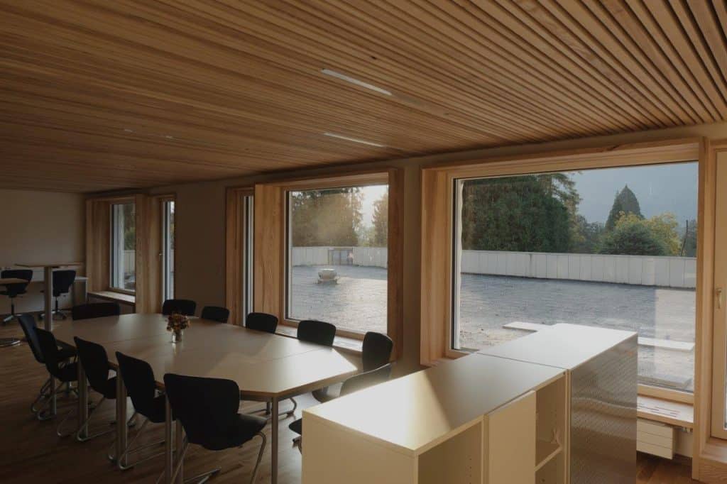 Die von uns gefertigten und montierten Fenster, Fensterverkleidungen, Deckenabhängungen und Innentüren sorgen für eine warme und helle Atmosphäre.